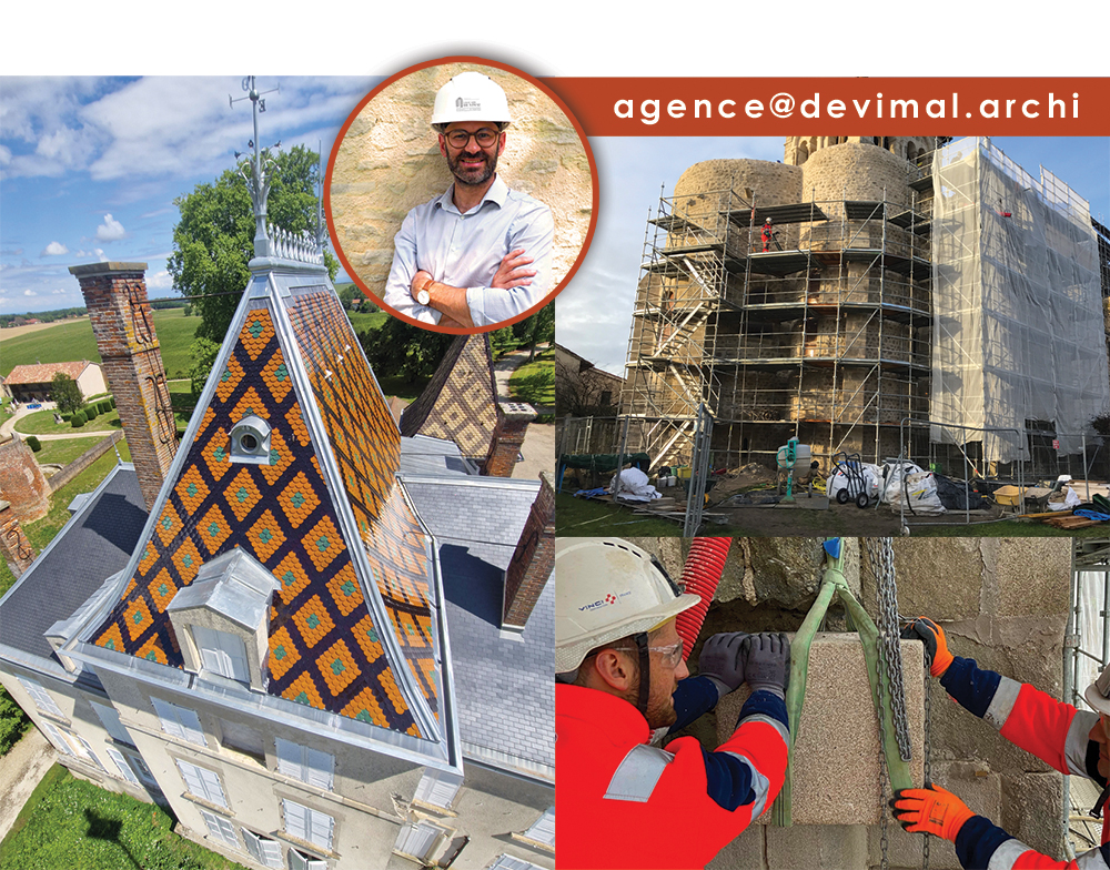 L’agence est dirigée par Edouard de Vimal, architecte du patrimoine cumulant plus de quinze années d’expérience dans la restauration et la mise en valeur d’édifices anciens (protégés ou non au titre des MH) : maisons de maître, églises, châteaux, ruines antiques et domaines viticoles etc.